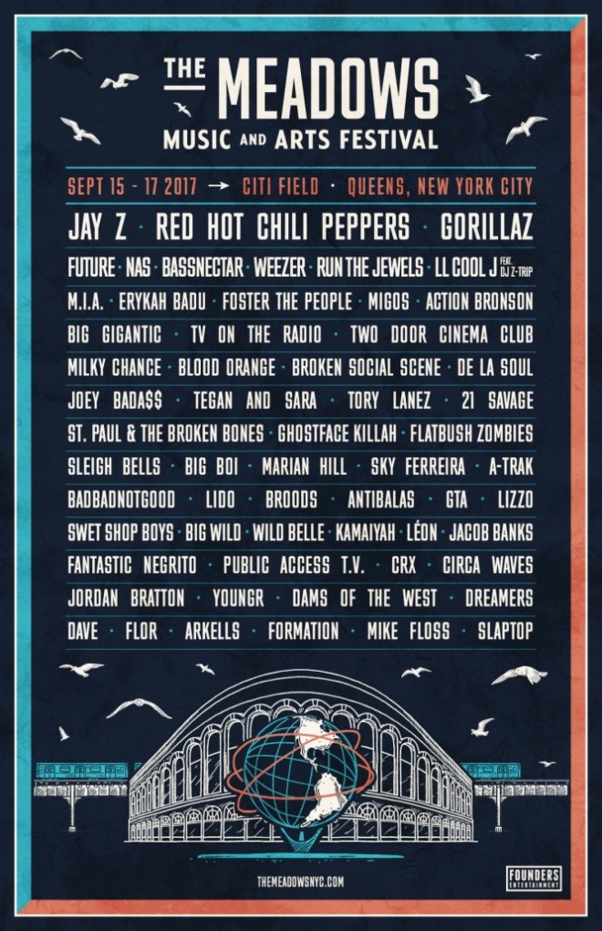 Just today, the festival announced its stacked lineup of artists for this years edition. After an announcement by Gorillaz and the festival earlier last month, we were already hyped that they would be part of this years edition. Now to take that up a notch, The Meadows 2017 will be headlined by Jay Z, Red Hot Chili Peppers and Gorillaz! The eclectic line up also features Bassnectar, Future, Big Gigantic, Run the Jewels, Migos, A-Trak, M.I.A. and a ton more. With a claim of having over 60 artists spread over 4 stages in the span of 3 days, this lineup is sure promising of the good times to come! A rather brilliant mix of the best from the worlds of Hip-hop, pop and dance music, this lineup pretty much has something for all the music aficionados out there.