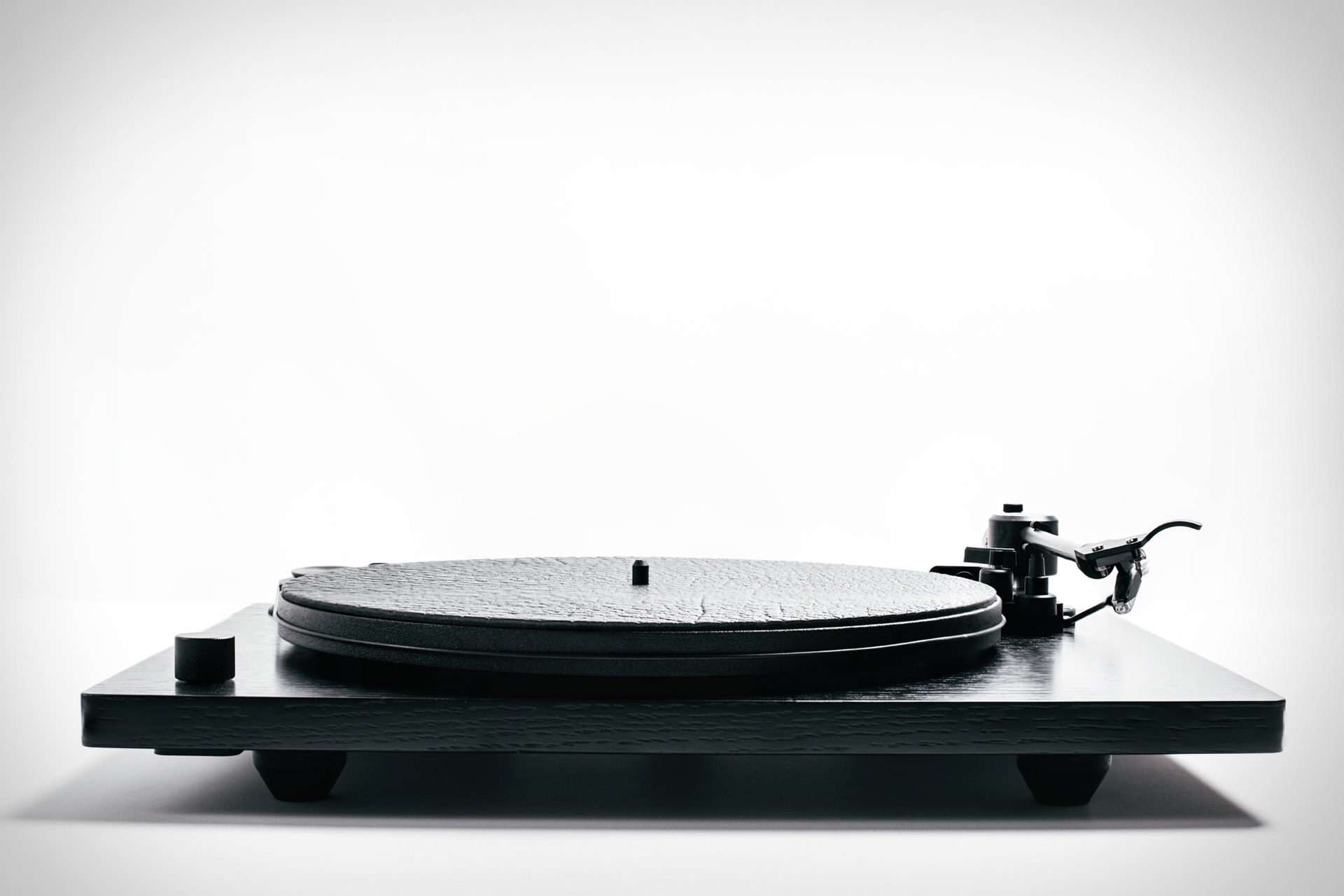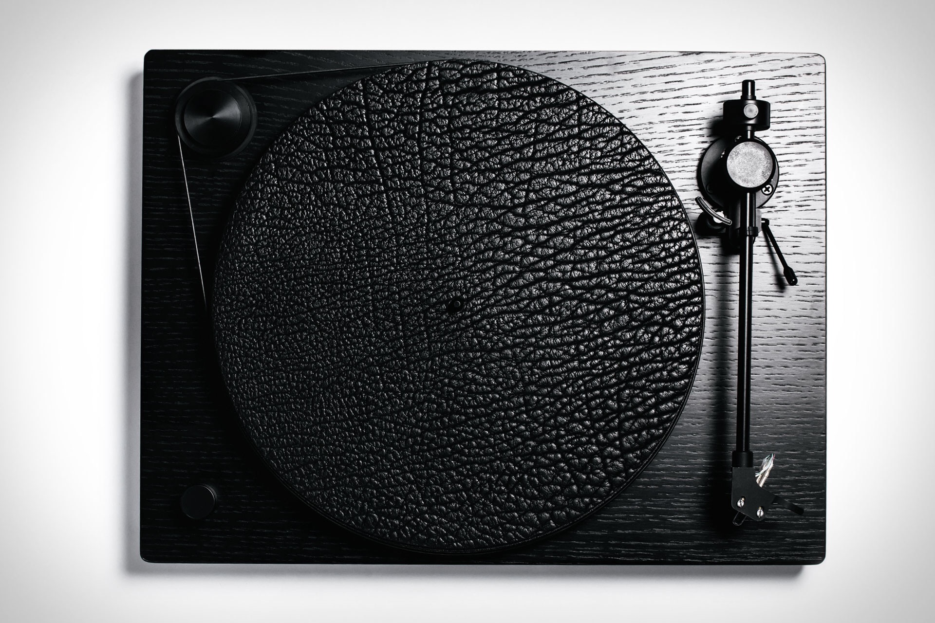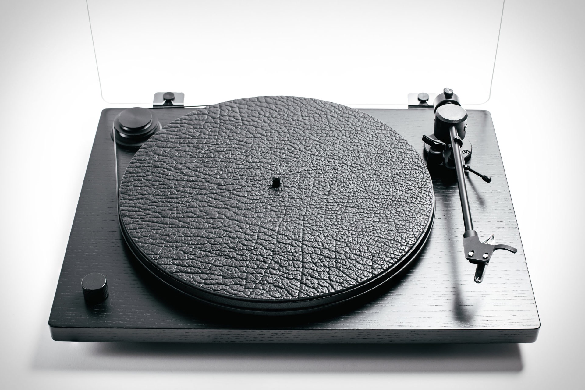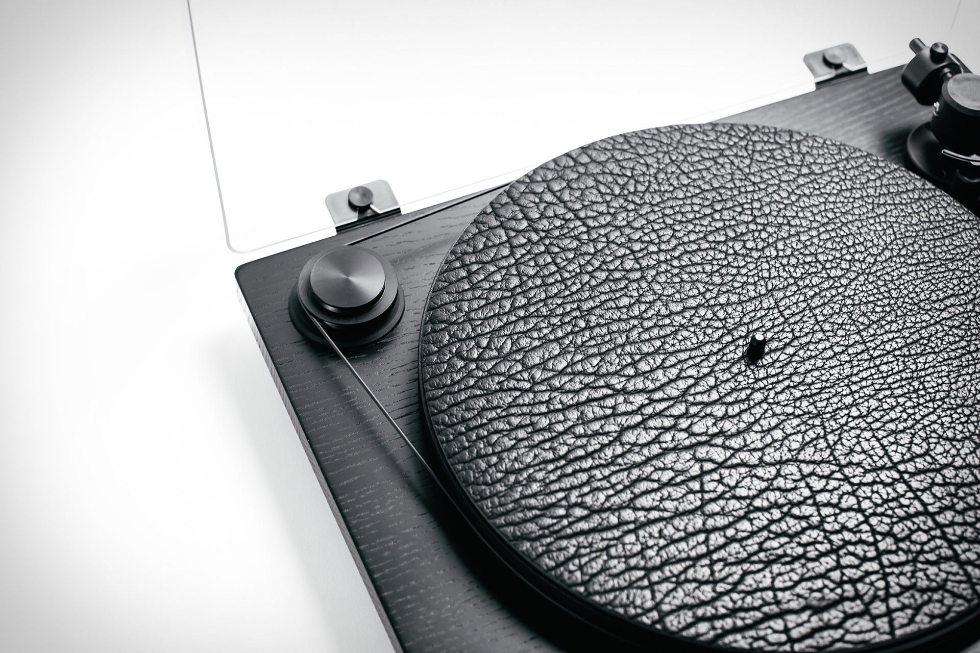 It’s complemented by a mat cut from our signature bison leather, along with powder-coated black tonearm parts, and a custom on/off knob machined especially for this release. Thanks to the built-in pre-amp (no separate receiver or amp required) and pre-installed Ortofon OM 5E cartridge, you can hook it straight up to any pair of powered speakers and start playing, making it ideal if you’re just getting into vinyl or just want a no-fuss setup.