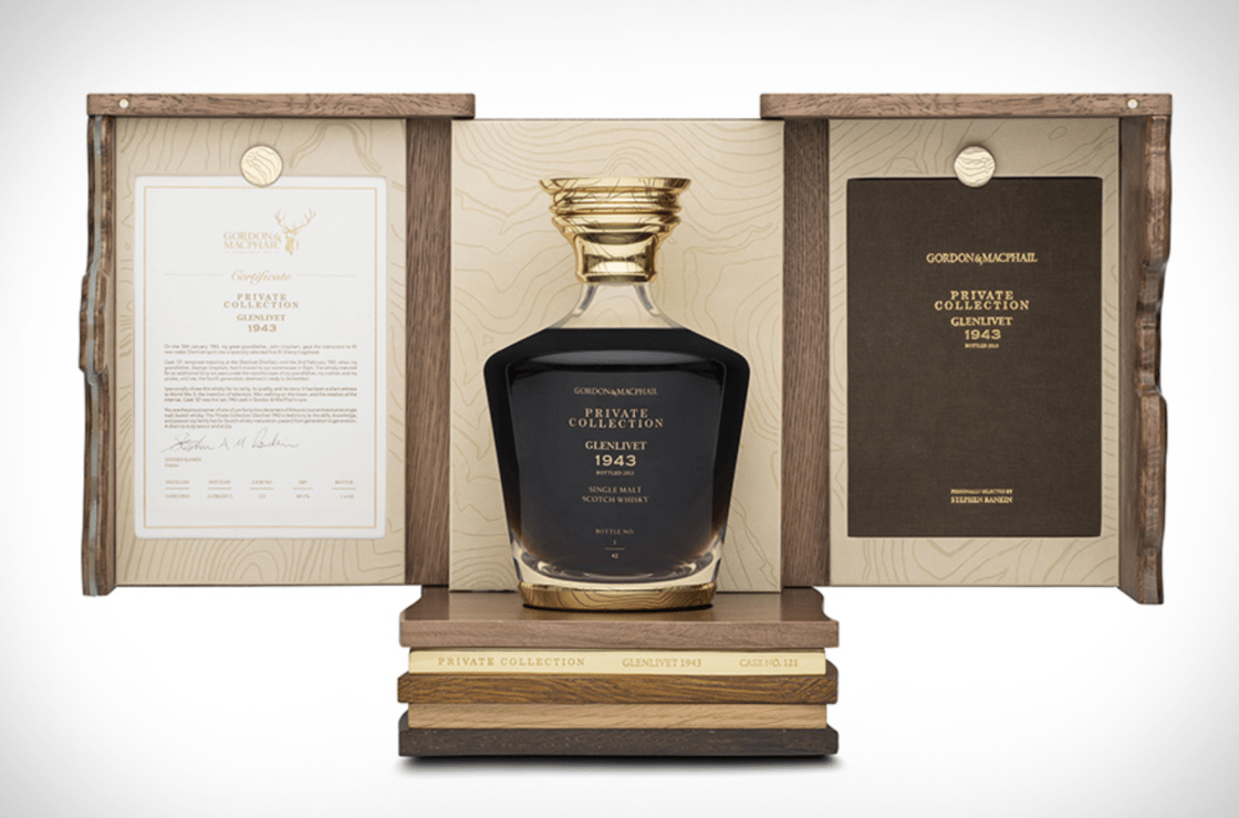 Every detail of Private Collection Glenlivet 1943 by Gordon & MacPhail alludes to the decades of experience and patience poured into nurturing the whisky to maturation.