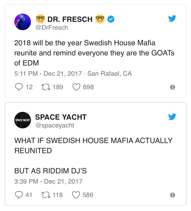 The rumors are further fueled by Steve Angello recently following Axwell and Sebastian Ingrosso on Instagram, and the release of Ultra Music Festival’s Miami 2018 lineup, which boasts Axwell & Ingrosso as a headliner for the 20th year anniversary edition. The festival’s flyer also instructs fans to “expect the unexpected” and hints at “special anniversary performances.”