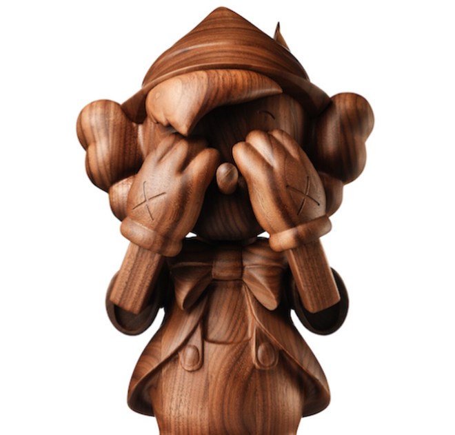 KAWS recently took to his Instagram to announce the launch of his PINOCCHIO wooden sculpture (15.35 x 7.48 x 7.09 inches) made in collaboration with Disney back in 2017.