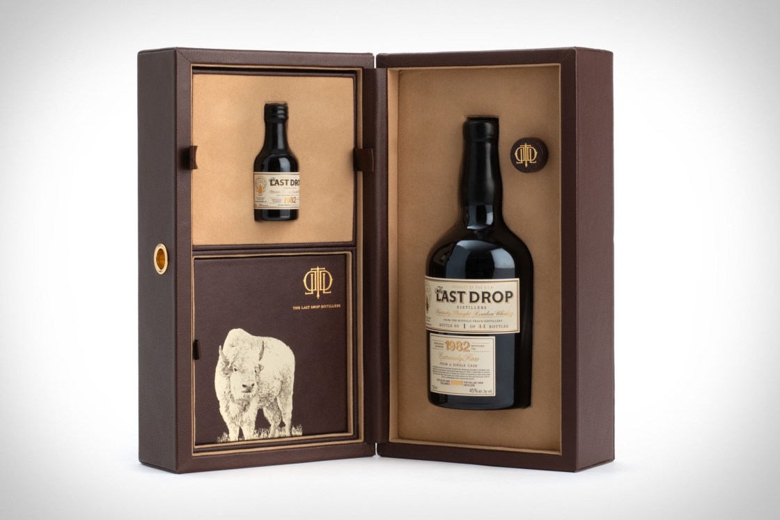 After maturing for 20 years, the spirit was removed from oak barrels at its peak to avoid over-aging and halt the evaporation process. Each bottle is packaged in a brown leather case that includes a 50ml miniature replica, and a pocket-sized tasting book with tasting notes from the Last Drop Team and Buffalo Trace’s Master Distiller. Only 44 bottles exist, with 25 hitting the U.S. market.