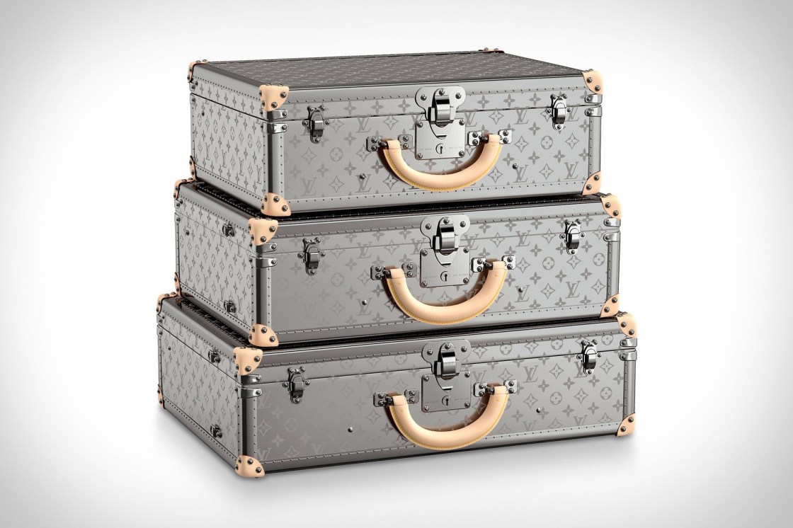 Made from titanium, Louis Vuitton’s Titane collection is a fresh take on the company’s classic trunks. The company’s signature monogram print is laser-etched into the titanium side panels, while the borders and locks are made from ruthenium, giving them a subtly darker look. Leather is still used for the corners and handles, however, providing a nice pop of color, and they’re finished with gray microfiber lining and cotton straps. Available in three sizes.