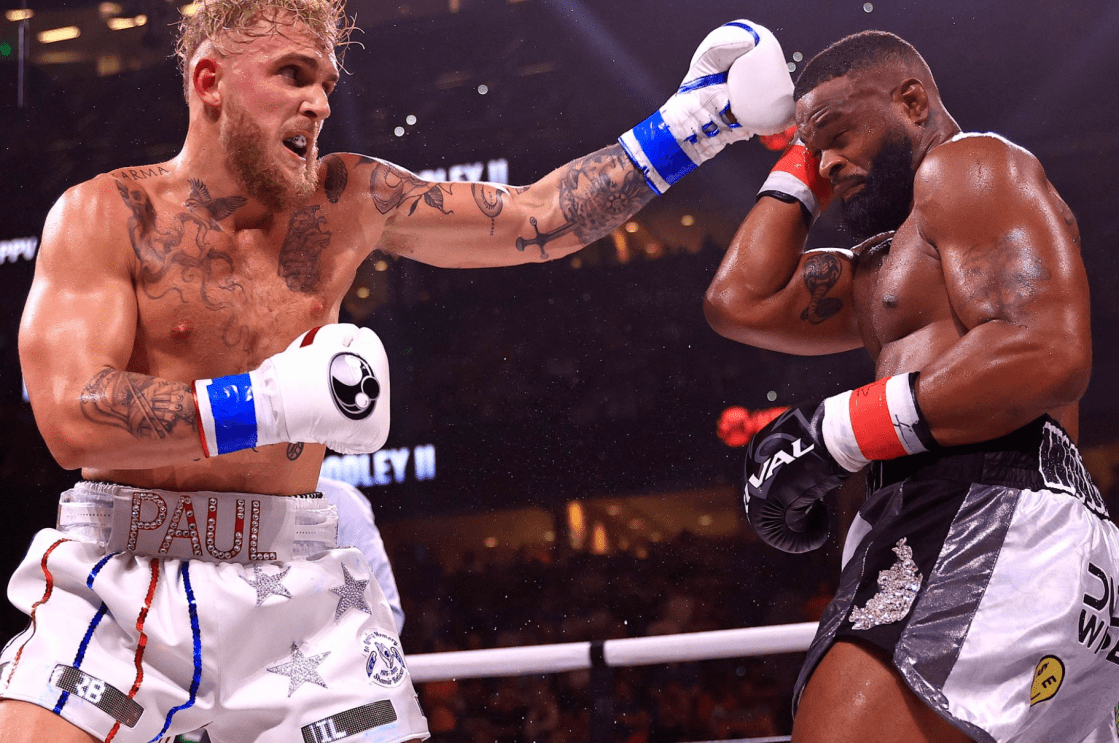 With a split decision win for their first bout — leading Woodley to tattoo “I Love Jake Paul” on his finger — Jake Paul Vs. Tyron Woodley 2 was signed last minute as a replacement fight due to an injured Tommy Fury. Scoring in favor 10-9 in the first five rounds, Paul was on his way to winning via points, but things changed in the sixth round when he feinted a jab followed by a powerful right hand which dropped Woodley stiff on the canvas.