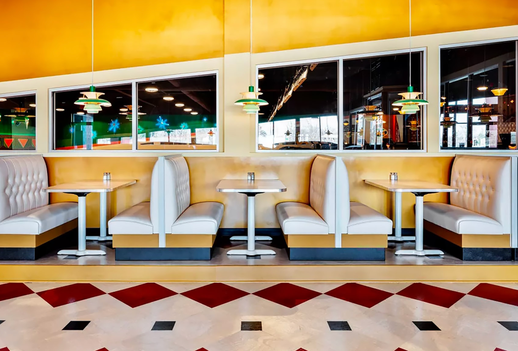 You’re not dreaming. This Big Lebowski-inspired bowling alley is real. Housed in a former K-Mart, Eastside Bowl is a 33,000-square-foot bowling alley, diner, lounge, and arcade in Nashville. Designed by Cowboy Creative, the space’s retro vibes take cues from The Dude’s dream sequence in the 1998 film. The original concrete floors have been covered with graphic carpets, while the walls feature eccentric wallpaper by Clint Van Gemer and glowing neon signs. An antique disco ball and the same paint used by Gibson Guitars for its Gold Top guitars complete the quirky aesthetic.