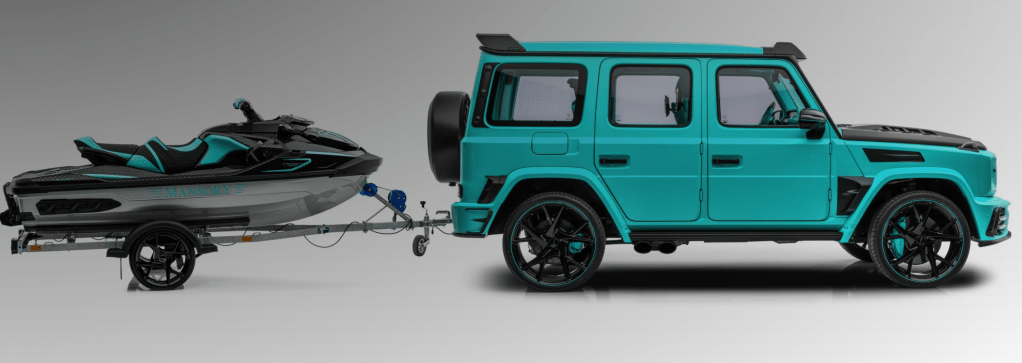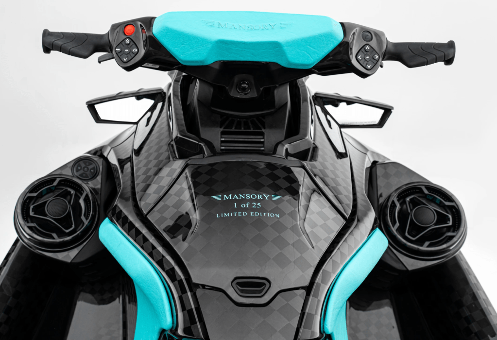 Mansory has introduced the perfect companion for its line of customized SUVs — a custom Marlin Jet 400 jet ski. Based on the Seadoo GTX 300, the Marlin Jet features a body made completely of carbon fiber, reducing weight by 22 pounds, with a top speed of 82 MPH. The seat is covered in quilted, water-resistant leather and embroidered with a color-keyed logo and stitching. The Marlin Jet is equipped with a variable trim system and a waterproof compartment with USB charger. The Mansory Marlin Jet 400 is limited to 25 units.