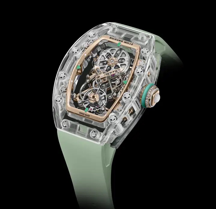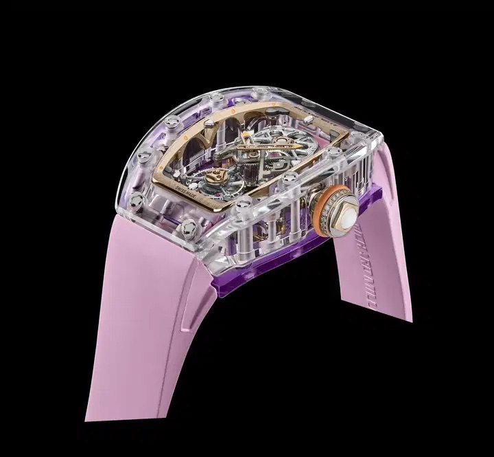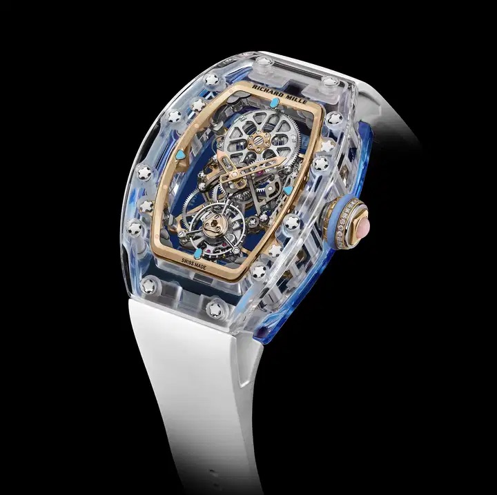 The RM 75-01 Flying Tourbillon is Sapphire is a masterpiece that showcases Richard Mille’s expertise in crafting skeletonized movements. What sets it apart is its tripartite case, which is made entirely from sapphire – a feat that demands over 1,000 hours of meticulous manufacturing. Available in clear, blue, or pink sapphire, this watch is a testament to the brand’s innovative spirit.